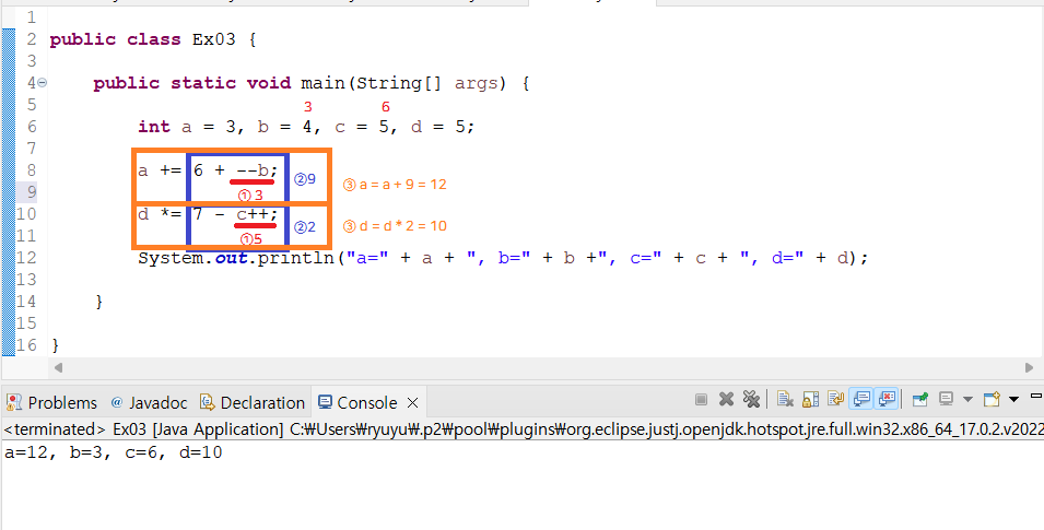 증감연산자와 대입연산자 예제