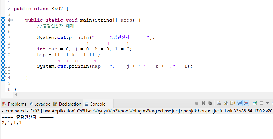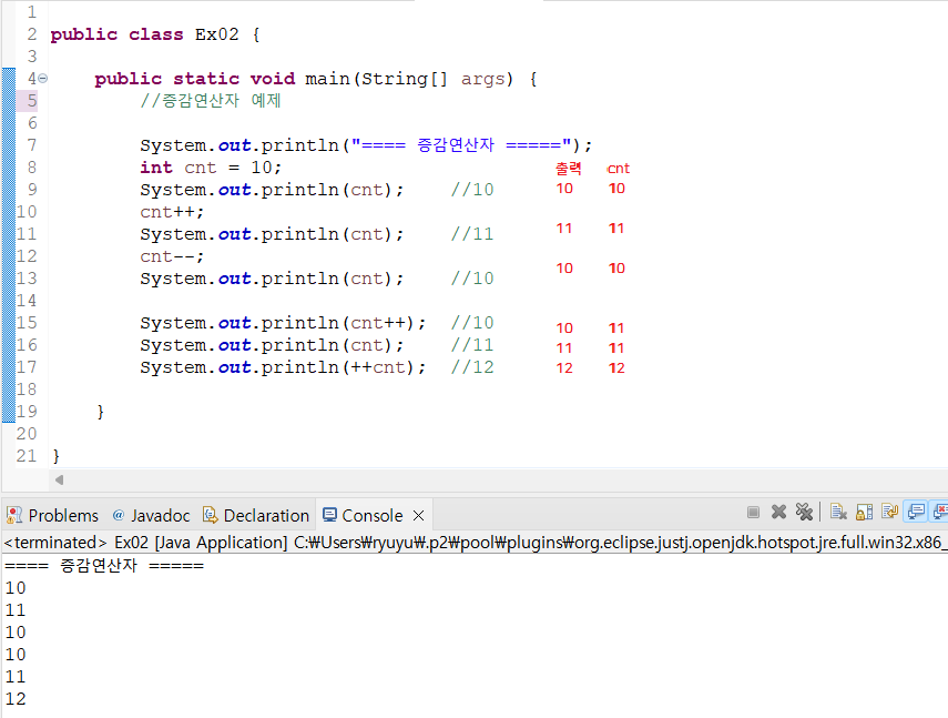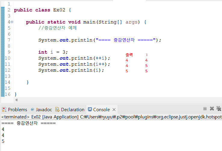 System.out.println("==== 증감연산자 =====");