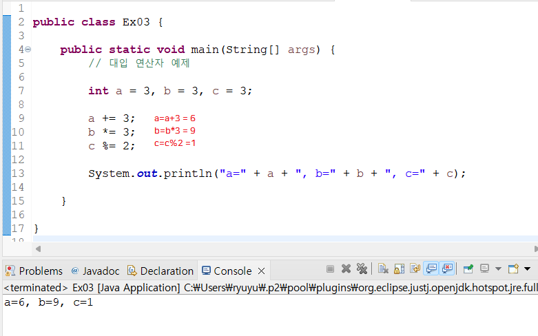 a += 3; // a = a+3 =6