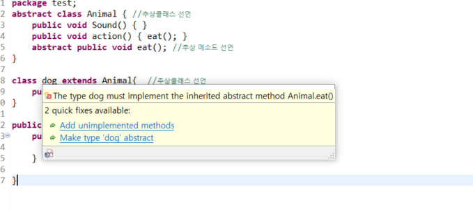 abstract class dog extends Animal{ //추상클래스 선언
