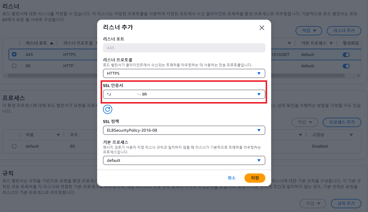 - 인스턴스 트래픽 및 크기 조정 구성 > 리스너 > HTTPS 편집