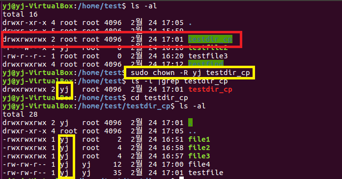 chown -R yj testdir_cp