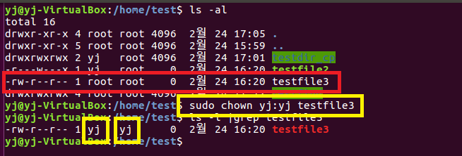 chown yj:yj testfile3