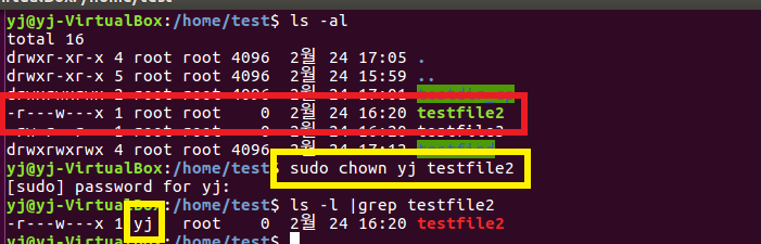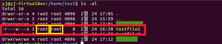 -rw-r--r-- 1 root root 0 2월 24 16:20 testfile2